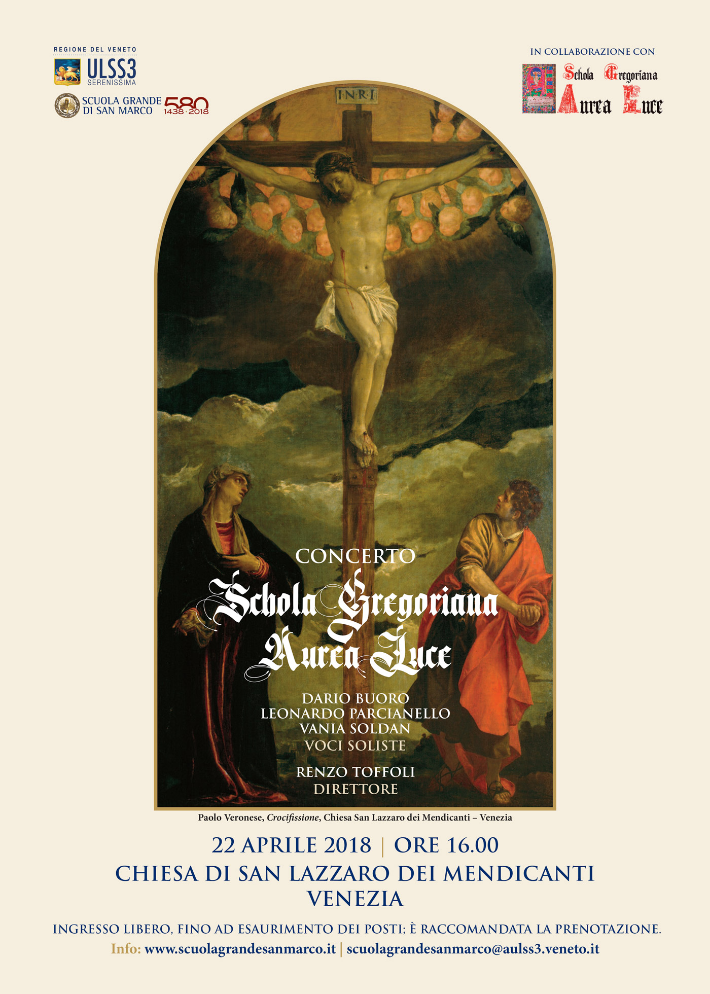 ---- 22 Aprile 2018 ---- ore 16.00 Scuola Grande San Marco Chiesa di San Lazzaro dei Mendicanti Venezia