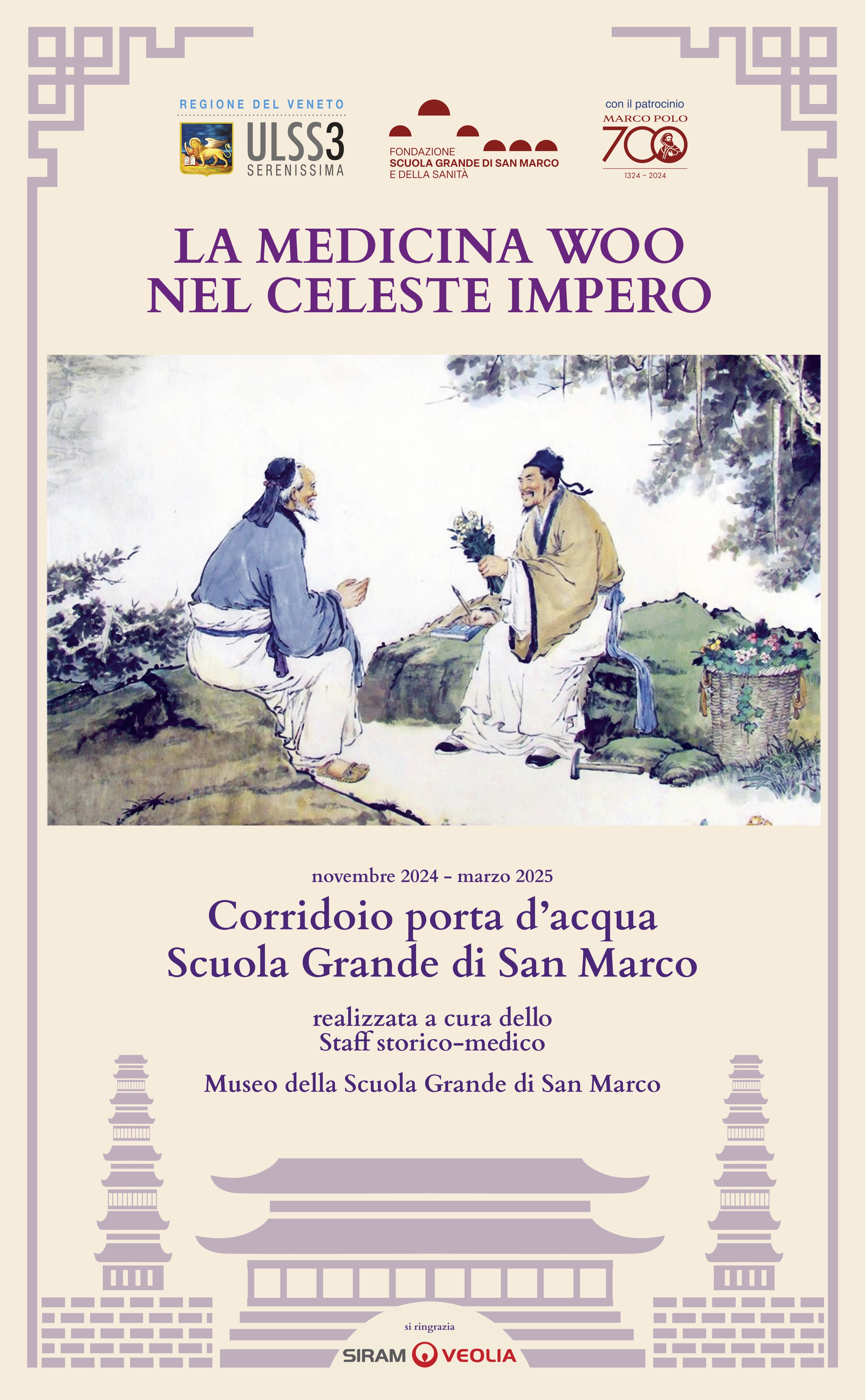 Potete ammirare la mostra grafica relativa alla Medicina Woo nel Celeste Impero. la mostra è visibile presso il Corridoio porta d'Acqua della Scuola Grande di San Marco.